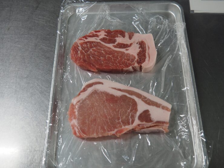 今回は豚肩ロース肉、豚背ロース肉の部位を使って、「トンテキ」を作っていきます。