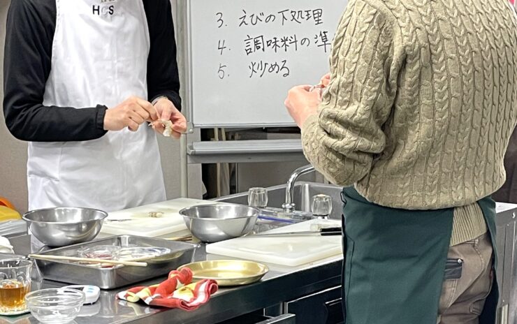 今日のメニューのいちおしポイントはささみの下処理と殻付きえびの下処理です!!