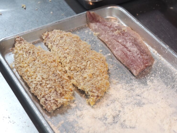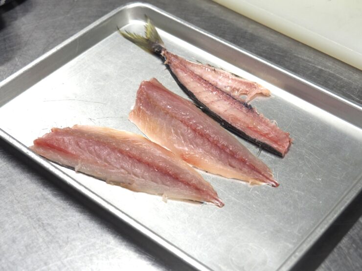 トマトの薄切り(4mm以下)、そしてアジの下処理、さらに高度な「三枚おろし」に挑戦しました。