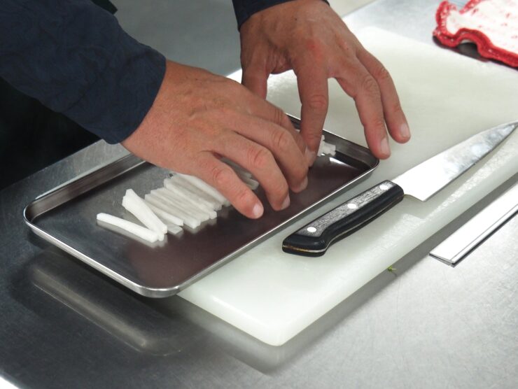 技能検定2級の実技試験を想定して大根のせん切り(5mm)に挑戦しました。