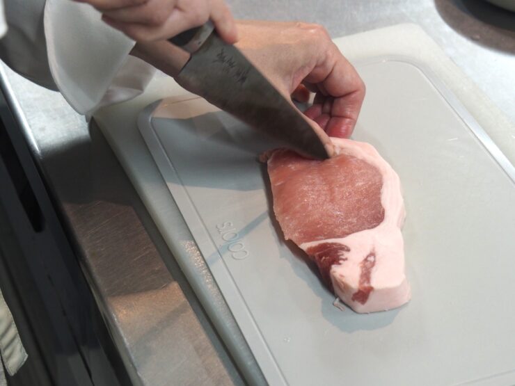 厚い豚ロース肉の筋切りはうまくできたでしょうか?