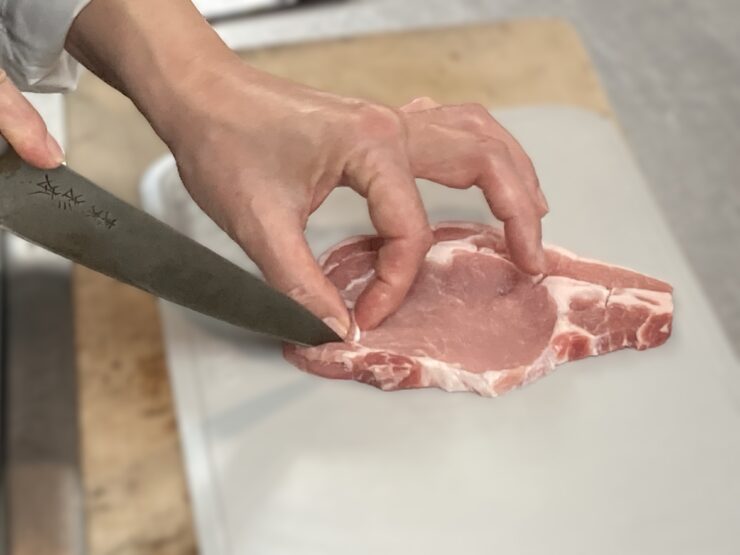 厚い豚ロース肉の筋切りはうまくできたでしょうか?