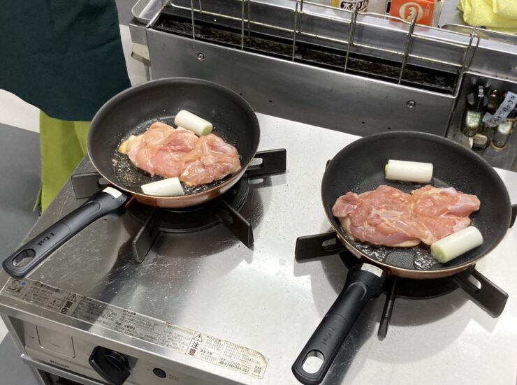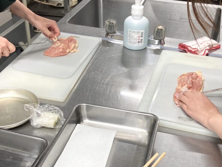 鶏肉に付着しているカンピロバクター菌を増やさないよう、下処理の段階から注意しながら調理をすすめました。