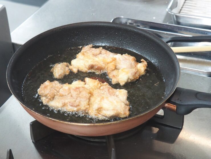 フライパンを使って、中が生焼けにならない揚げ方などをお伝えしました。