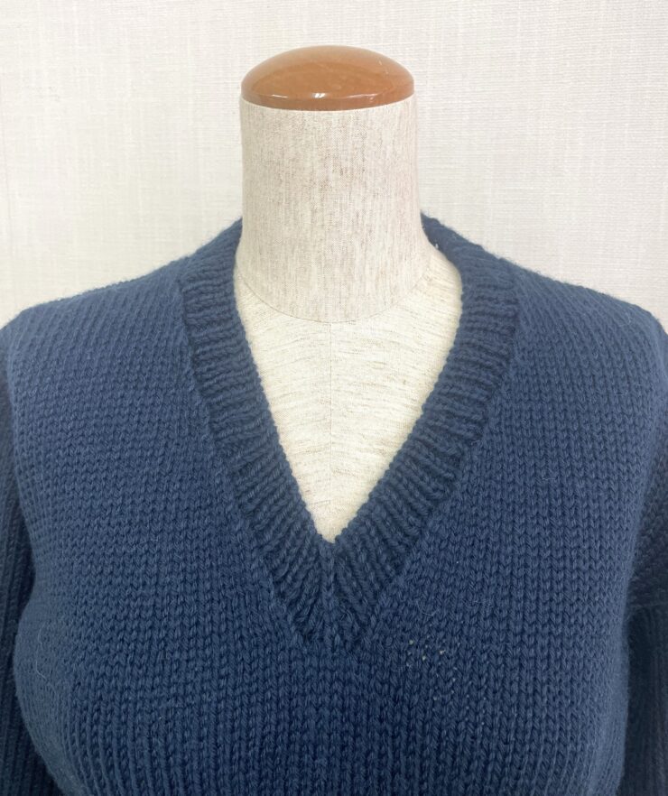「孫の学校用セーターを編みました。メリヤス編みで、3回のレッスンで完成。あたたかく着てもらえたら嬉しいです。」