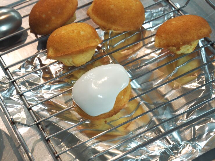 もう一つは、広島県産のレモンを使って、「レモンケーキ」を作りました。生地には、フレッシュレモンを絞った果汁とレモンの皮も削り入れていきます。一人3個作ったレモンケーキの内一つを、レモンの風味爽やかな「レモンアイシング」で仕上げました。