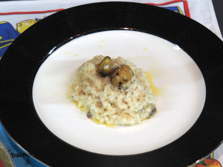 【 Risotto di castagna con parmigiano e funghi. 栗・チーズ・マッシュルームのリゾット 】